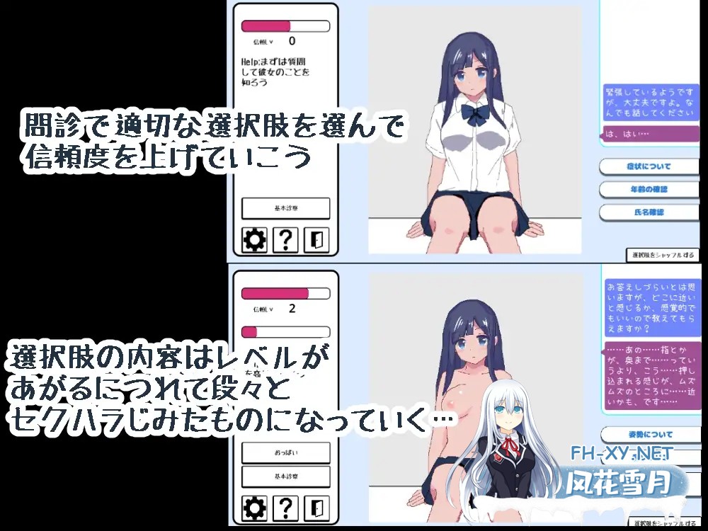 心理咨询、触诊,然后做爱! 这是一款简单的诊疗情境游戏。包含性骚扰对话和触摸互动元素,最终会发展到全裸性交的实 ...