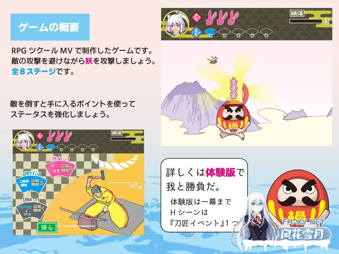 游戏介绍 神之刀可以驱散妖怪 ※BGM使用AI作曲工具生成(2首曲目)。 这是一款需要躲避敌人攻击的同时进行“斩妖”的 ...