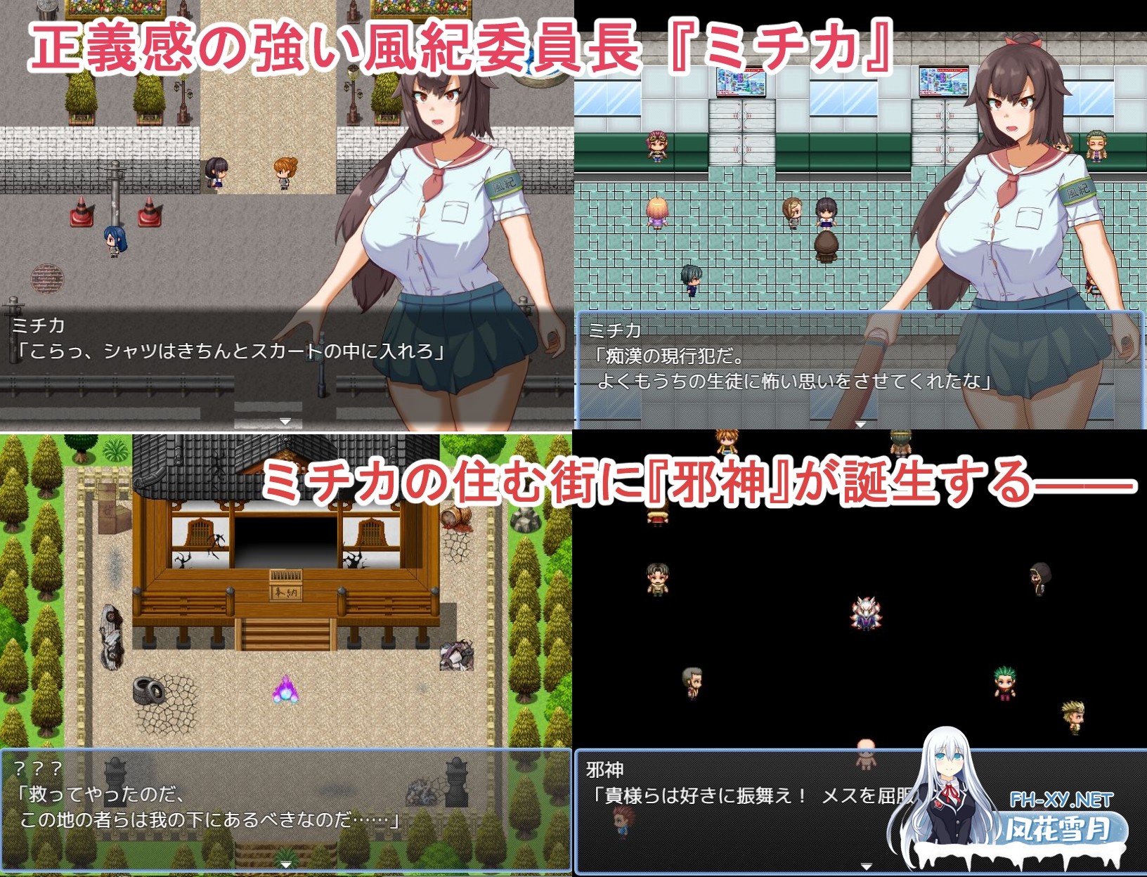 游戏简介: ◆正义感很强的风纪委员长美智香知道神社里诞生了邪神。 如果说街道会有危险的话,那就是michi ka干 ...